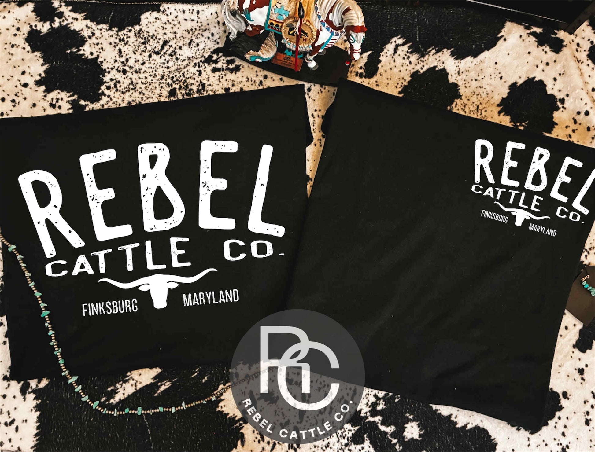 - Classic black tee with white Rebel Cattle Co. logo